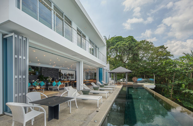 Bluesiam Villa sits on a hill overlooking a prestigious Surin Beach.